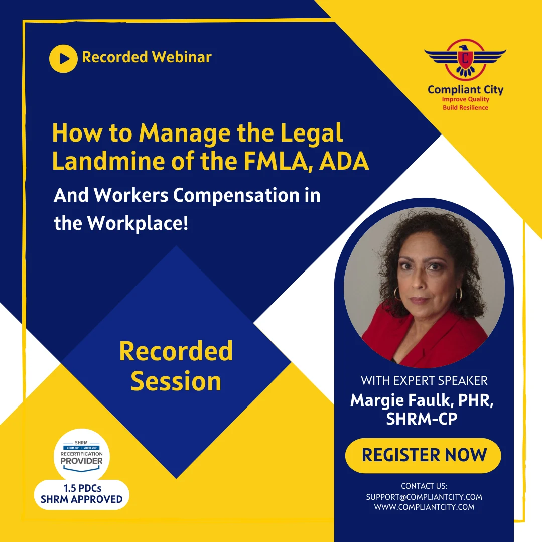 - Learn the differences between each of the FMLA, ADA and Workers Compensation requirement